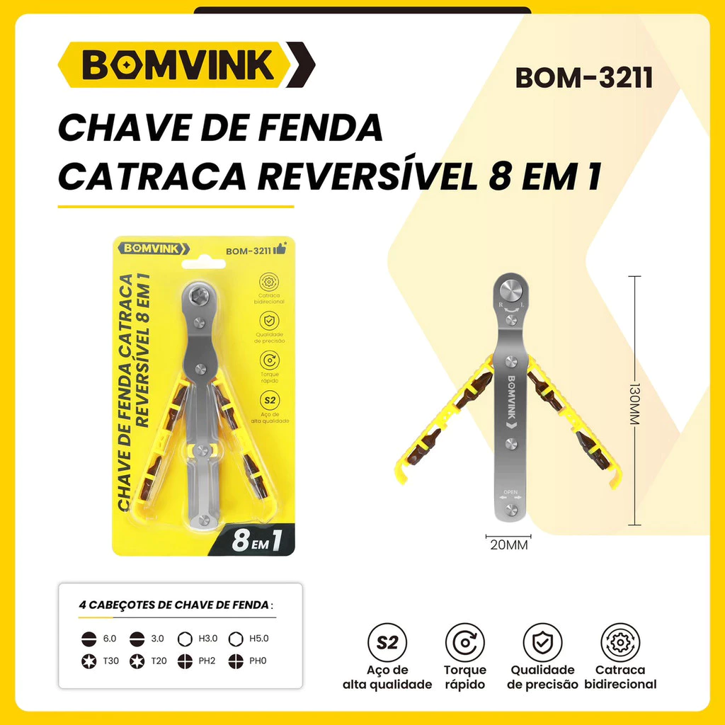 A Chave de Fenda com Catraca Reversível 8 em 1 é uma ferramenta indispensável para quem busca precisão, durabilidade e praticidade em um único produto. Com um sistema de catraca bidirecional, é ideal para uma ampla gama de reparos e ajustes, facilitando o trabalho em espaços pequenos e oferecendo um torque rápido e eficiente.